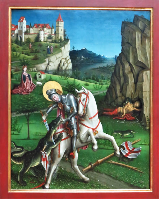 We'll close today's blog entry with our air-conditioned visit to the Kunstmuseum Basel, the largest art museum in Switzerland. Remember St. George and the Dragon on the walls of the Minster? Basel seems to have a St. George "thing," as there are two more portraits of him in the museum, first from the 13th and then from the 14th century.